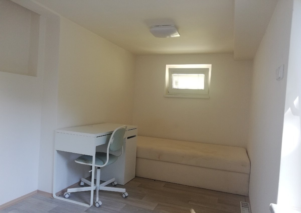 K pronájmu je mezonetový pokoj pro dvě osoby v třípatrovém cihlovém domě. Pokoj se nachází v přízemí a je orientovaný do zahrady. K dispozici je sdílená kuchyň a koupelna společná ještě se dvěma dalšími pokoji na stejném patře. Ideální pro studenty.