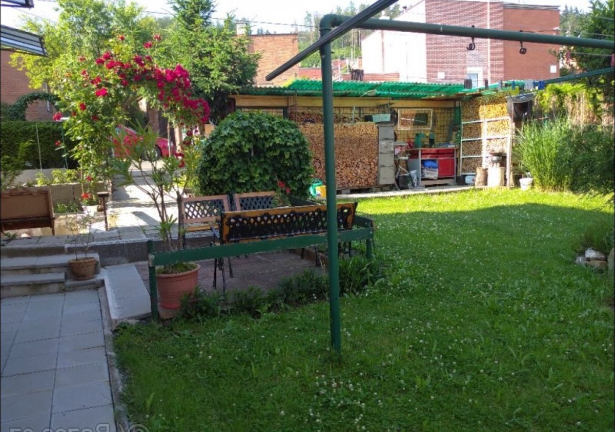 K domu patří upravená zahrádka s celoročním posezením, ideální na grilování i odpočinek.